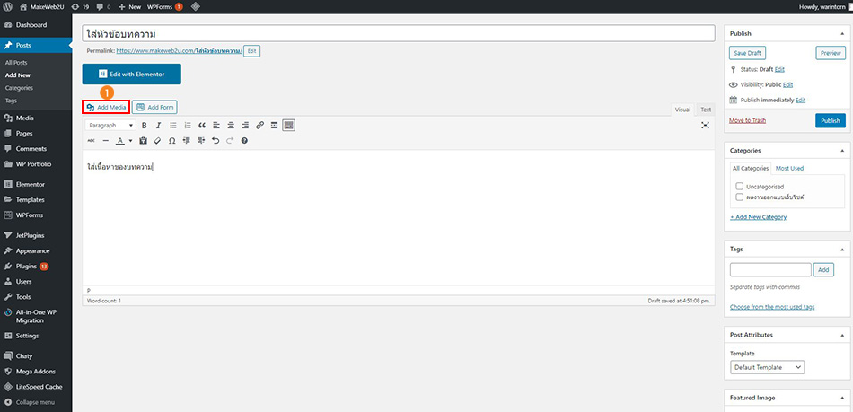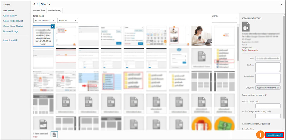4. เมื่อไฟล์อัปโหลดเสร็จแล้วให้คลิกที่ Insert into post