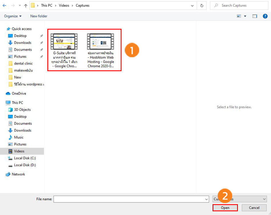 3. เลือกวิดีโอที่ต้องการ จากนั้นคลิกที่ Open