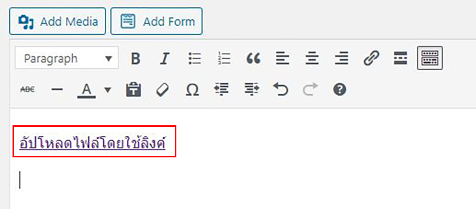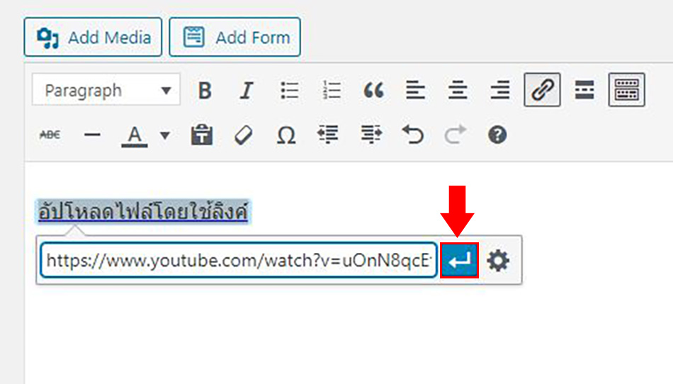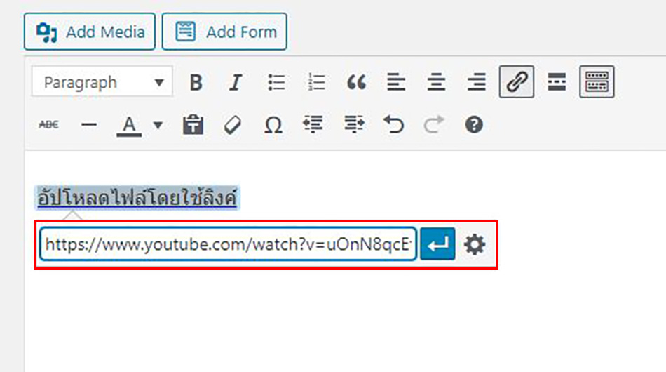 1.ใช้เมาส์ลากคุมดำข้อความที่ต้องการวางลิงค์คลิปวีดีโอ จากนั้นคลิกที่สัญญาลักษณ์การลิงค์ ดังภาพ